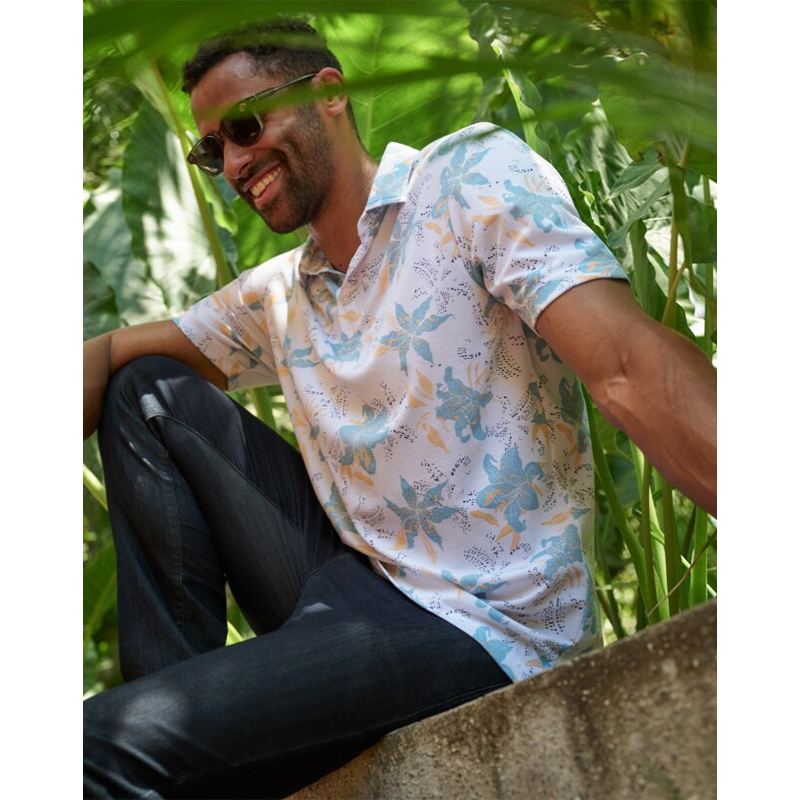 Embrace the call of the islands without boarding a plane in the PARADISE PEAK men's polo. Its Hawaiian-inspired floral print isn't just a pattern; it's a lifestyle choice in fresh, seasonal colors that promise comfort and style. Ideal for those who carry the spirit of aloha with them wherever they go…and prefer their wit as dry as their martinis.