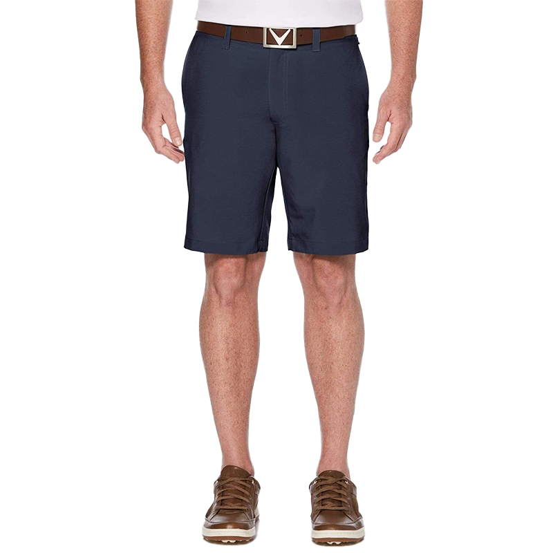 A practical addition to any guy’s Golf wardrobe, these Callaway flat front shorts have a sleek solid-colored design that complements almost any top with ease. The men’s golf shorts feature stretch in both the fabric and waistband for a comfortable and flexible fit. They’re crafted with a tight plain weave