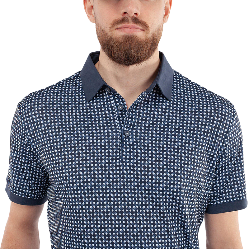 The soft, comfortable Melvin shirt features a golf ball print inspired by the shooting movement of cells. Be a star on the golf course with this lightweight, breathable polo shirt.