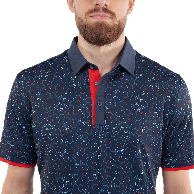 Inspired by the molecular structure of dopamine, Mannix is a lightweight, breathable VENTIL8™ PLUS golf polo shirt with double cuff sleeve ends. The contrasting piping on the placket adds a special touch.