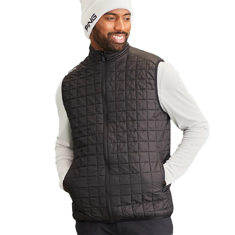 Experience unmatched warmth with the Norse S6 Men's PrimaLoft® Vest in Black. Engineered to provide ultimate insulation without the weight, this vest features PrimaLoft® Silver Active Insulation throughout, ensuring you stay warm in cold weather. The wind and water-resistant outer fabric adds an extra layer of protection against the elements, while the quilted design and stretch binding to hem and armholes offer a sleek, modern look. With two front zip pockets for practical storage and a contrast colour inner lining for added style, this vest is both functional and fashionable. The PING Eye logo on the front shoulder and Eye Mark logo on the back neck add the finishing touch.