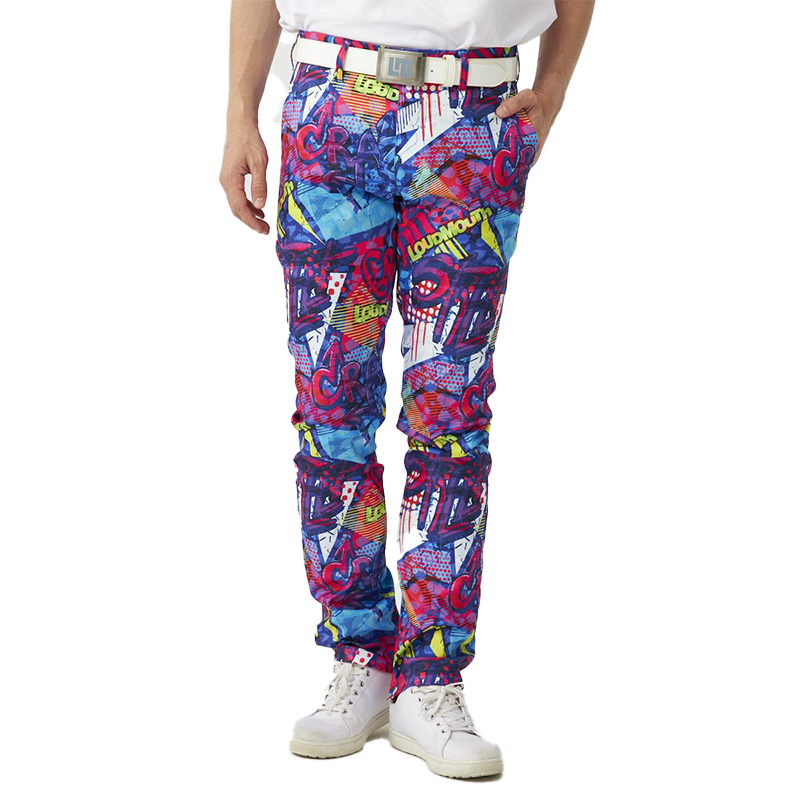 Patterned pants made of polyester twill material that allows for easy movement.Washing instructions, materials, and country of origin may vary depending on the color