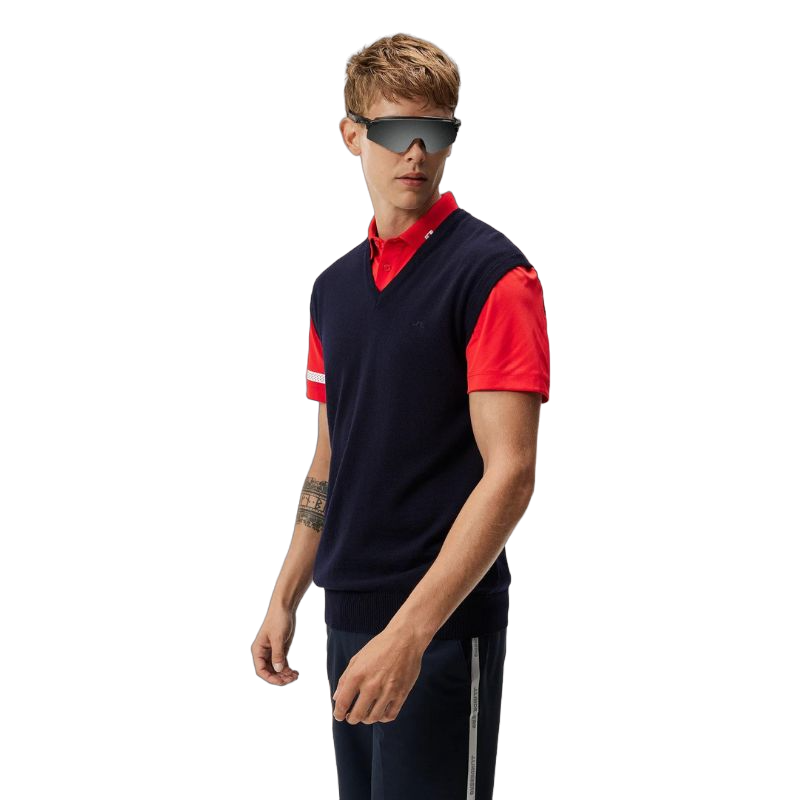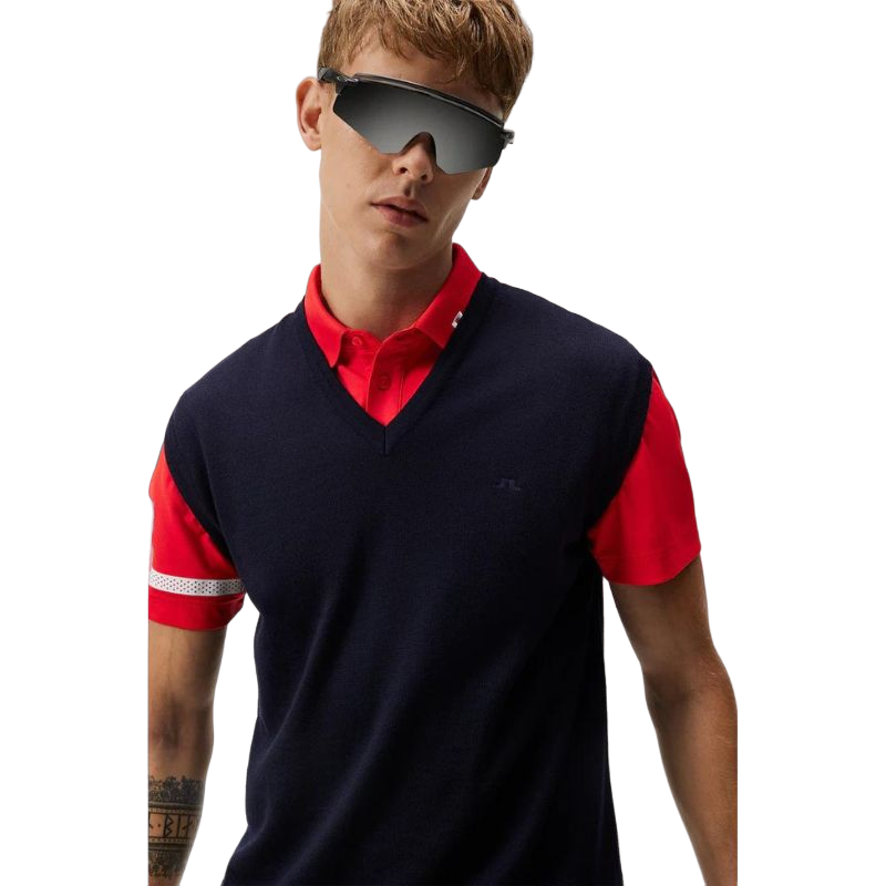 Add sophistication to your golf game in our OEKO-TEX®-certified Liam Knitted Vest, a versatile layering top that seamlessly blends fashion and function. Crafted from an incredibly soft viscose/polyester blend, this lightweight vest offers exceptional comfort. The all-over colorful knit design is complemented by a classic ribbed effect at the hemline, creating a touch of class. The always regal V-neck cut gives you an impeccable range of fashion possibilities. Layer it with polos or other tops.